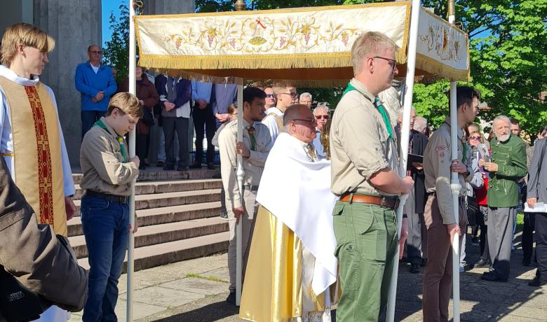 A belvárosi plébániával újra sikerült megszilárdítanunk kapcsolatunkat. László atya biztosított helyszínt a vezetői megbeszélések számára, valamint a belvárosi templom egyik kis termét is felajánlotta a csapatunknak. Ennek felújítási munkálatai az idei legnagyobb projektünk. Köszönetképpen igyekszünk részt venni a plébánia szolgálatában: a vezetőkből alakult cserkész zenekarunk idén már többször vállalt zenés szolgálatot, többi cserkészünk pedig ministrált a Kerektemplomban zajló miséken, sírt őrzött Húsvét előtt és Baldachint tartottak a körmenet alkalmával.