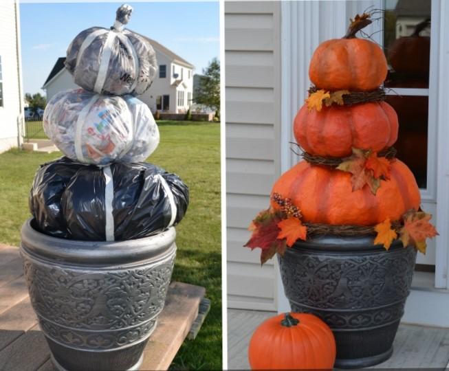 Mindössze annyit kell tenned, hogy összegyűjtöd az összes olyan szemetet, ami nem romlandó. Tehát a papírt, flakonokat, kartont és bármit, ami nem élelmiszer. Rakd bele tetszés szerint szemeteszsákokba. Kösd meg a tetejét, és formázd celluxszal dísztök alakúra. Az utolsó lépésként pedig fesd be a zsákokat.