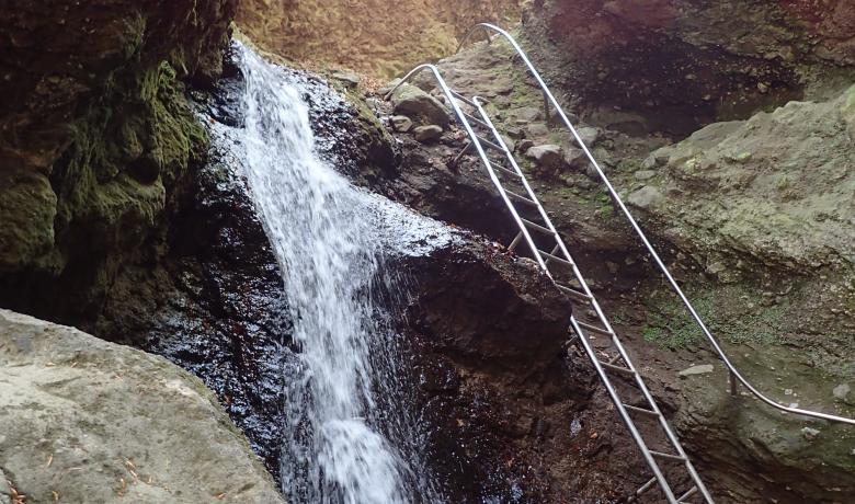 Tovább indulva kb. 1 km után jobbra kell letérnünk a zöld jelzésen a patak völgyébe, amely lényegében már maga a Rám-szakadék, bár hivatalosan inkább szurdoknak lehet nevezni. Magyarország egyik leglátogatottabb turistalátványosságainak egyike. Gyönyörű a hely, öröm a patak által kivájt széles és nagyon mély szurdokban sétálni. Van, hogy a patakban, van, mikor korlátok és láncok segítségével a meder meredek kőfalán kell araszolnunk felfelé, sőt, két helyen fém létra segítségével tudjuk csak leküzdeni a szintkülönbséget. Az ajánlott haladási irány lentről felfelé, de általában találkozni olyan turistákkal, akik ezt nem tartják be, és így megnehezítik a többiek útját.